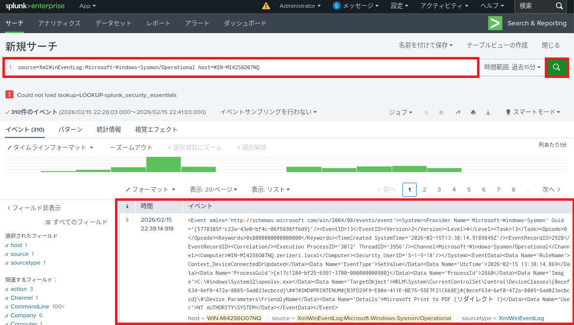$ splunk.exe restartSplunk Enterpriseでログ検索